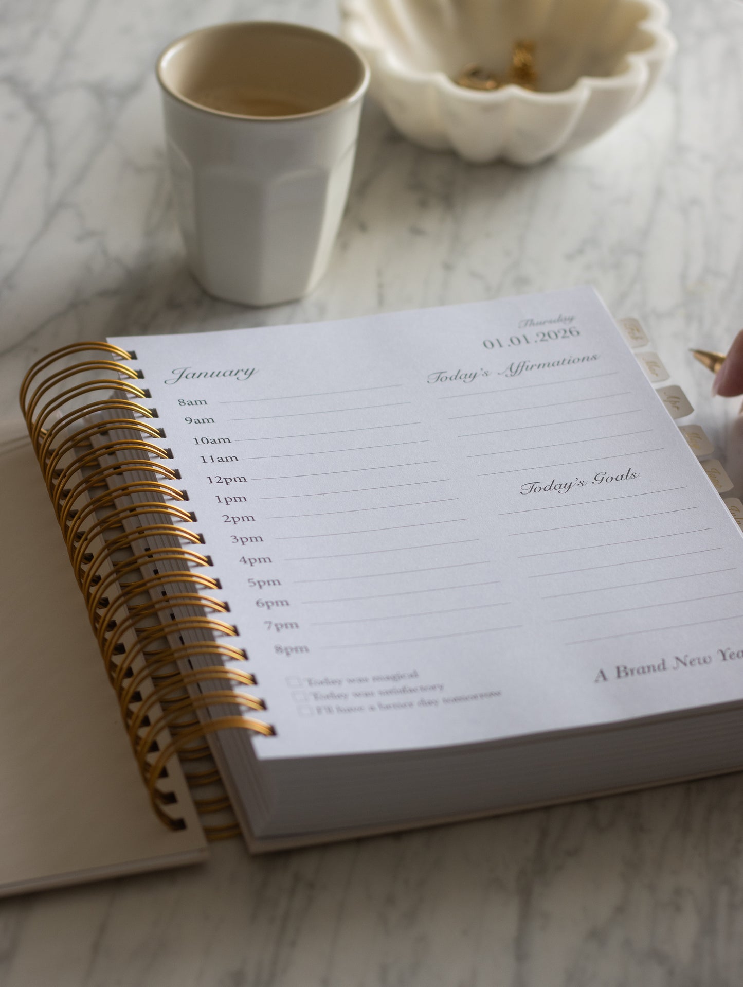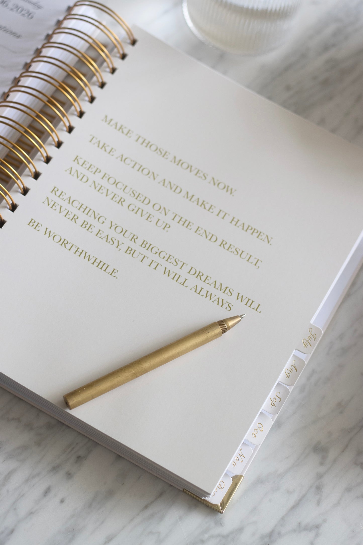 Dream big with our 2026 Planner - a diary designed to help you stay organised and motivated, whilst adding a touch of elegance to your work desk.